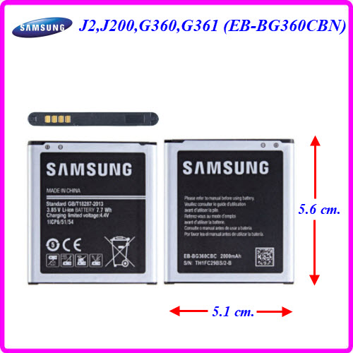 แบตเตอรี่ Samsung J2,J200,G360,G361 (EB-BG360CBN) Or.5.1x5.6 cm.2000 mAh.