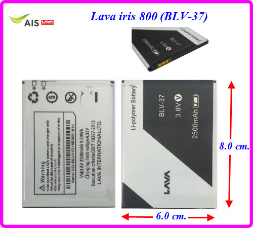 แบตเตอรี่ Ais Lava iris 800 (BLV-37) 6.0x8.0 cm. 2500 mAh.