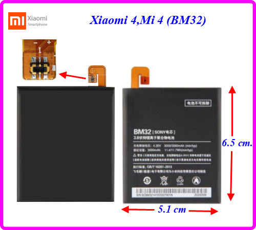 - แบตเตอรี่ Xiaomi 4,Mi 4,Mi4 (BM32) 5.1x6.5 cm. 3000 mAh.