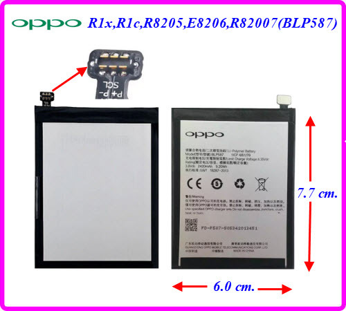 แบตเตอรี่ Oppo R1x,R1c,R8205,R8206,R82007(BLP587) 6.0x7.7 cm. 2420 mAh.