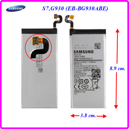 - แบตเตอรี่ Samsung S7,G930 (EB-BG930ABE) 3.8x8.9 cm.3000 mAh.