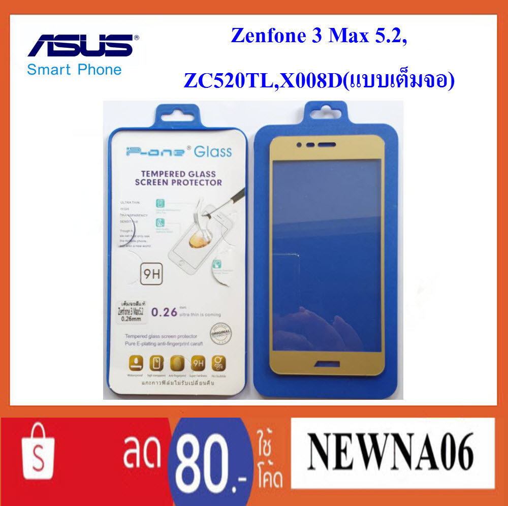 ฟีล์มกระจก(กันแตก) Zenfone 3 Max 5.2 ZC520TL,KL,X008D (แบบเต็มจอ)