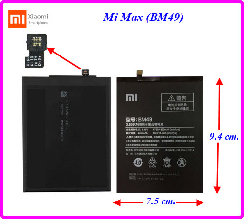 แบตเตอรี่ Xiaomi Mi Max (BM49) Or. 7.5x9.4 cm. 4850 mAh.