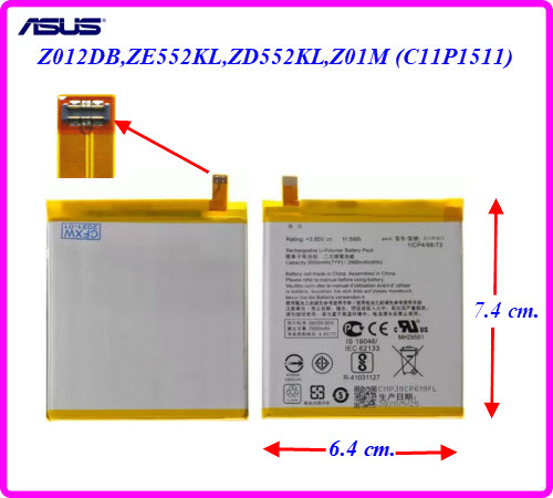 - แบตเตอรี่ Asus Z012DB,ZE552KL,ZD552KL,Z01M (C11P1511) 6.4x7.4 cm. 3000 mAh.