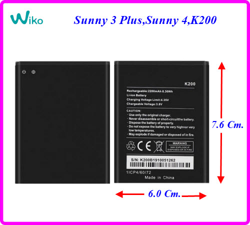 - แบตเตอรี่ wiko Sunny 3 Plus,Sunny 4,K200(6.0x7.6 Cm.)