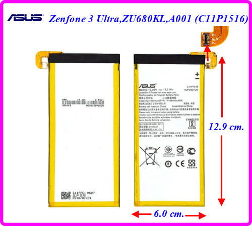 - แบตเตอรี่ ASUS Zenfone 3 Ultra,ZU680KL,A001 (C11P1516) Or. 6.0x12.9 cm. 4600 mAh.