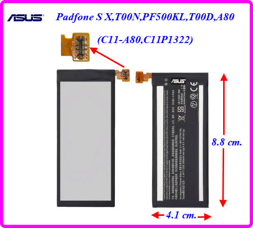 | แบตเตอรี่ Asus Padfone S X,T00N,PF500KL,T00D,A80 (C11-A80,C11P1322) 4.1x8.8 cm. 2400 mAh. |