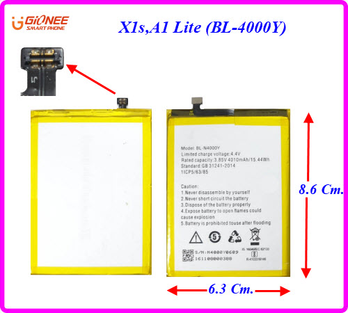 แบตเตอรี่ Gionee X1s,A1 Lite (BL-4000Y) 6.3x8.6 Cm.