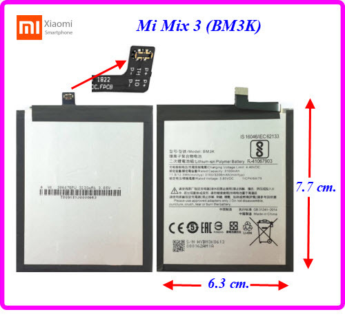 แบตเตอรี่ Xiaomi Mi Mix 3 (BM3K) 6.3x7.7 cm. 3200 mAh.