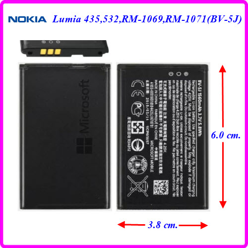 | แบตเตอรี่ Nokia Lumia 435,532,RM-1069,RM-1071(BV-5J) 3.8x6.0 cm.1560 mAh. |