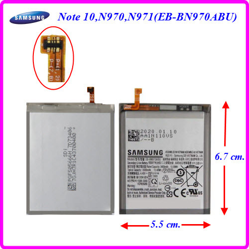 แบตเตอรี่ Samsung Note 10,N970,N971(EB-BN970ABU) Or. 5.5x6.7 cm.3500 mAh.