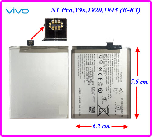 แบตเตอรี่ Vivo S1 Pro,Y9s,1920,1945 (B-K3) 6.2x7.6 cm. 4500 mAh.