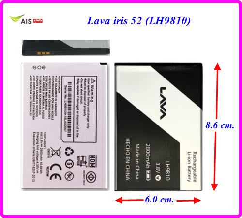 แบตเตอรี่ Ais Lava iris 52 (LH9810) 6.0x8.6 cm. 2800 mAh.