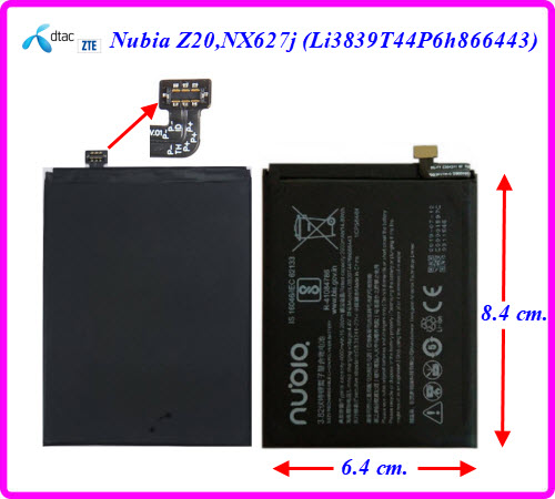 แบตเตอรี่ ZTE Nubia Z20,NX627j (Li3839T44P6h866443) 6.4x8.4 cm. 4000 mAh.