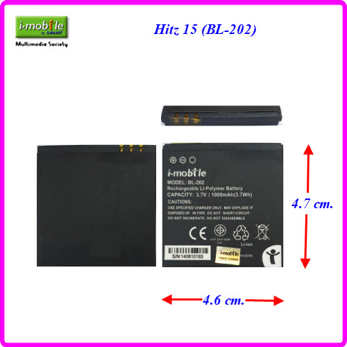 - แบตเตอรี่ i-mobile Hitz 15 (BL-202) แท้ 4.6x4.7 cm. 1000 mAh.