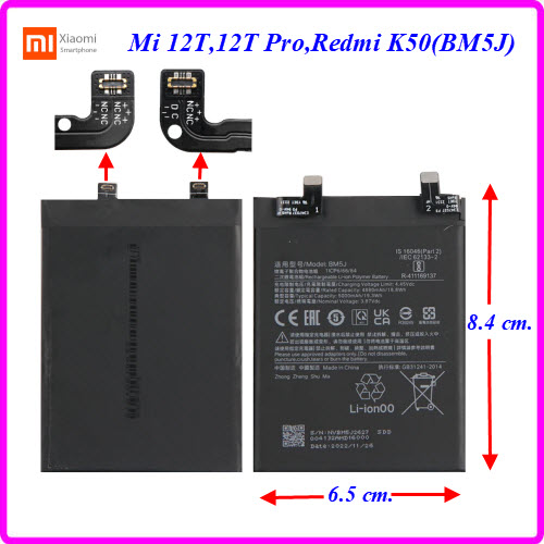 | แบตเตอรี่ Xiaomi Mi 12T,Mi 12T Pro,Redmi K50(BM5J) 6.5x8.4 cm.5000 mAh. |