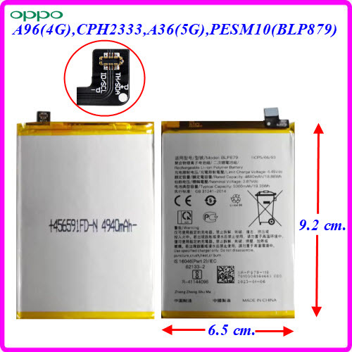 - แบตเตอรี่ Oppo A96(4G),CPH2333,A36(5G),PESM10(BLP879) 6.5x9.2 cm.5000 mAh.