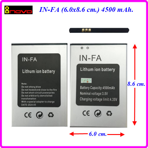 | แบตเตอรี่ inovo,Yestel IN-FA ของแท้ 6.0x8.6 cm.4500 mAh. |